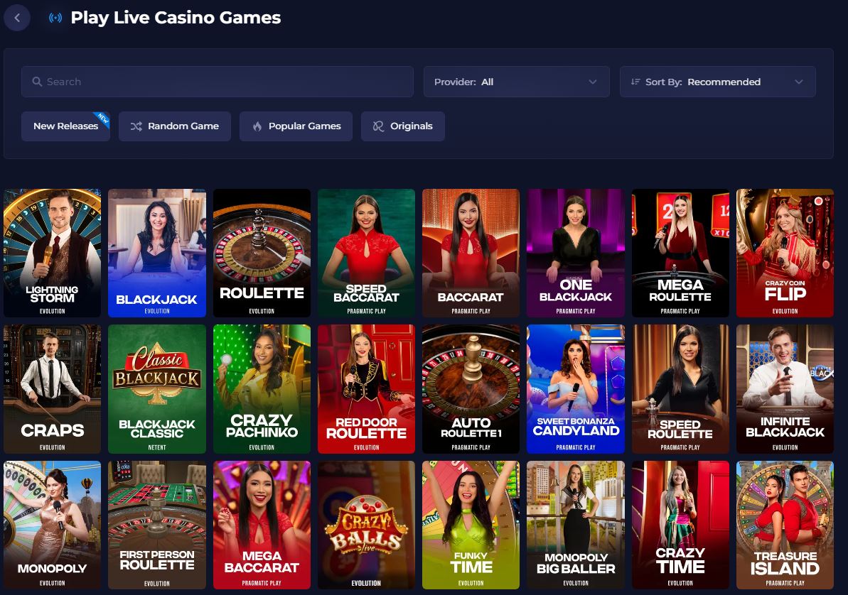 Rainbet’s live supplier area includes top-tier companies and branded titles, consisting of: